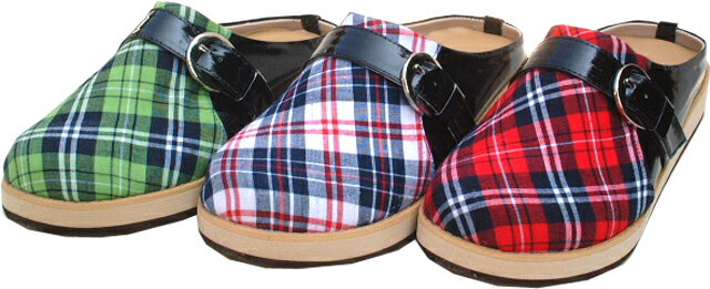 キュートなクロッグサンダル!わくわくするようなカラフルチェック柄!!これを履くと明るい気分になりそう!サイドのエナメル素材とのコンビが絶妙!!ベルトをあしらうことでデザインを引き締める!つま先ポップな丸みでかわいい+足入れのよさ!きちんと底には滑り止め付でとっても安心!!特別価格で販売中!サイズ目安 S:22.0 M:23.0 L:24.0 LL:25.0